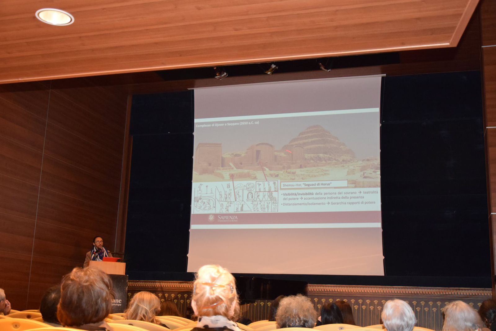Après l’ouverture de l’exposition, le public s’est rendu dans la salle de théâtre pour assister à une conférence du professeur Angelo Colonna, égyptologue à l’Université La Sapienza de Rome. Il y a abordé le thème du corps royal, en débutant par l’exemple du roi Louis XVI, dont la figure, au cœur des tableaux et des scènes, symbolisait la majesté et l’inviolabilité du pouvoir.